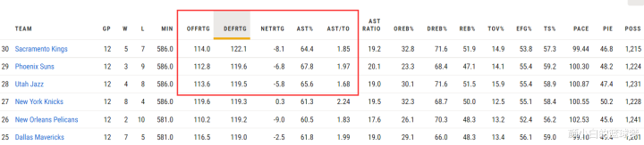 但太阳这12场比赛防守效率119.6联盟倒数第二,进攻效率112.8联盟倒数第十,换言之除了三巨头进攻还行其余的人都太拉跨。