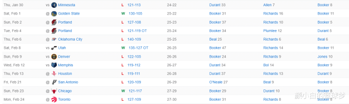 过去的12场比赛太阳输掉了其中的9场,连输开拓者两场令人咋舌,不敌马刺、猛龙也让人不理解。
